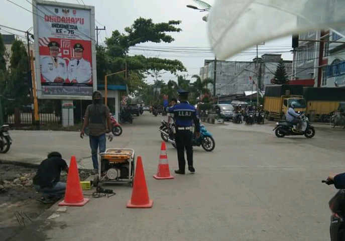 Benar saja sejak beberapa hari lalu, terlihat pengerjaan lampu lalu lintas itu sedang dalam proses perbaikan.
