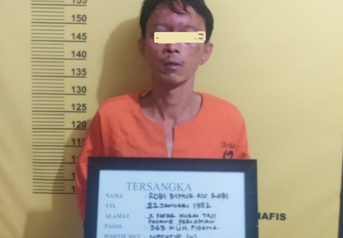 PEKANBARU - Robi Binur (38) ditangkap Polsek Bukitraya, Pekanbaru. Pasalnya, ia nekat mencuri uang kotak infak di Musala Al Ikhlas, Jalan Ikhlas Kelurahan Tangkerang Labuai, Pekanbaru.