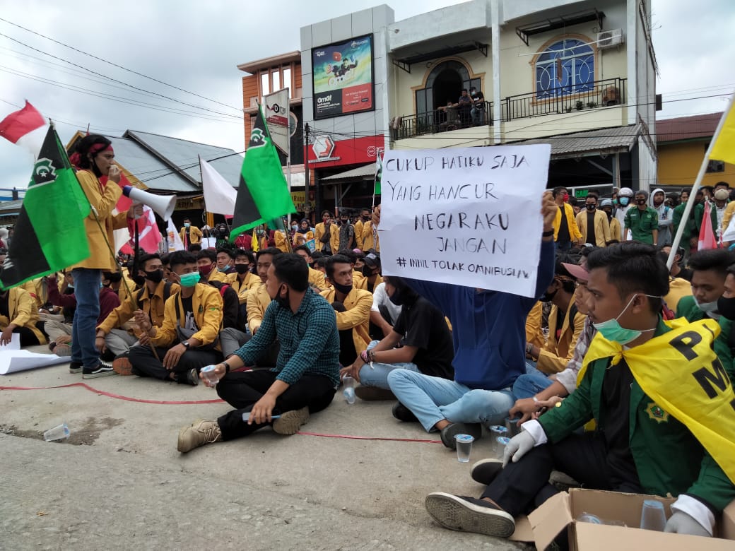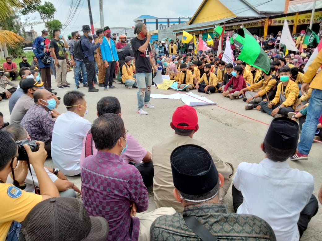 Ratusan Mahasiswa dan Buruh Desak DPRD Inhil Tolak UU Omnibus Law