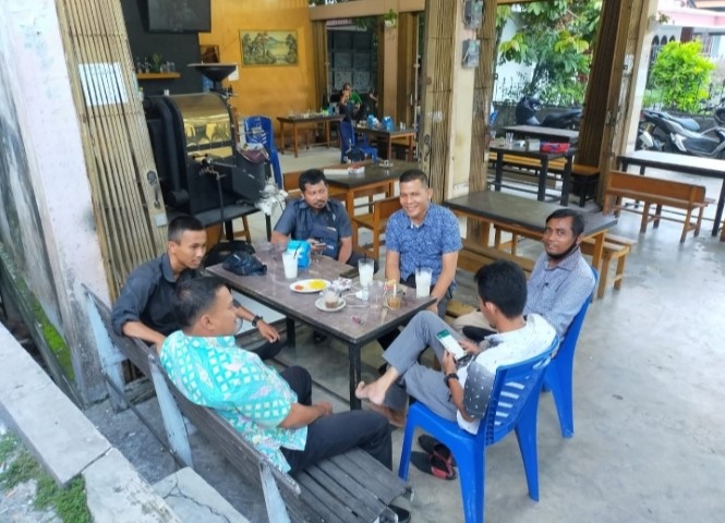 Dua balon ketua yang menyatakan maju pada Konferkab PWI kabupaten Kampar tanggal 11 November 2020, Arief dan Akhiryani duduk bersama di salah satu cafe di Jalan H Agussalim, Bangkinang Kota.
