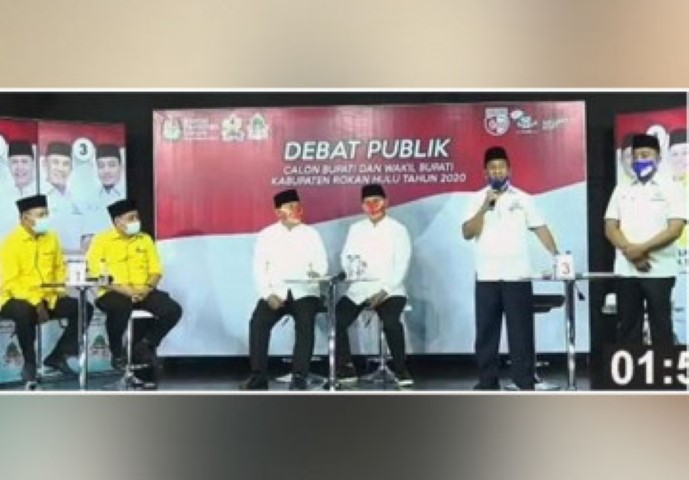 ROHUL - KPU Kabupaten Rokan Hulu menggelar debat Publik Calon Bupati dan Wakil Bupati Rokan Hulu, Rabu malam (25/11/2020) malam. Debat publik bertema "Menyerasikan Pelaksanaan Pembangunan Daerah dengan Provinsi dan Nasional Sebagai Upaya menyelesaikan persoalan daerah berlangsung menarik.