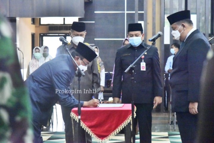 INDOVIZKA.COM - Bupati Indragiri Hilir (Inhil), Drs HM Wardan MP melantik dan mengambil sumpah/ janji jabatan Sekretaris Daerah (Sekda) Kabupaten Inhil di Gedung Daerah Engku Kelana Tembilahan, Rabu (2/12/2020).