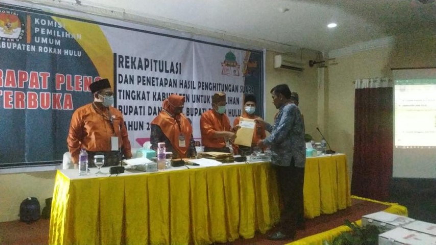 Keputusan tersebut ditetapkan melalui Keputusan KPU Rohul Nomor 620/PL.02.6-kpt/1406/KPU-Kab/XII/ 2020 tentang penetapan Rekapitulasi Hasil Penghitungan Suara Pemilihan Bupati dan Wakil Bupati Rohul 2020.