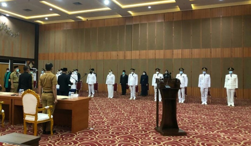 Selain 12 camat definitif, Sekda juga mengukuhkan Pelaksana tugas Camat. Proses pelantikan berlangsung di Komplek Komplek Perkantoran Walikota Pekanbaru, Tenayan Raya, Senin (4/1/2021).
