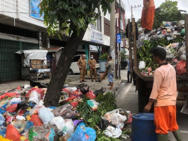 Sekretaris Daerah (Sekda) Kota Pekanbaru H Muhammad Jamil SAg MAg MSi turun langsung bersama Kepala DLHK Kota Pekanbaru Agus Pramono membersihkan tumpukan sampah di jalan.