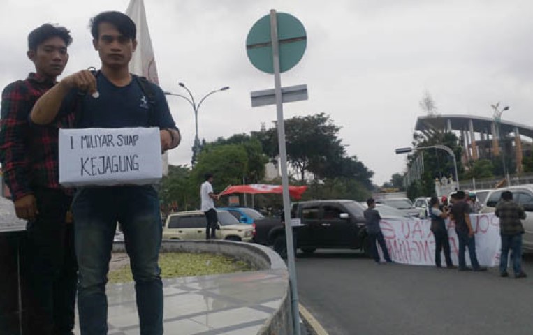 Sebab, mahasiswa ini menuding ketiga lembaga penegakan hukum tersebut diduga telah disuap Bupati Kampar Jefry Noer, agar sejumlah kasus korupsi yang terjadi di Kampar dan kasus dugaan penganiayaan yang dilaporkan dilakukan istrinya, Eva Yuliana terhadap Nur Asmi tidak dilanjutkan.