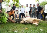 Potong Hewan Kurban Halaman Masjid Muhajirin Kantor Bupati, Sekda Distribusikan Daging ke THL dan Pegawai Kebersihan di Lingkungan Setdakab Kampar