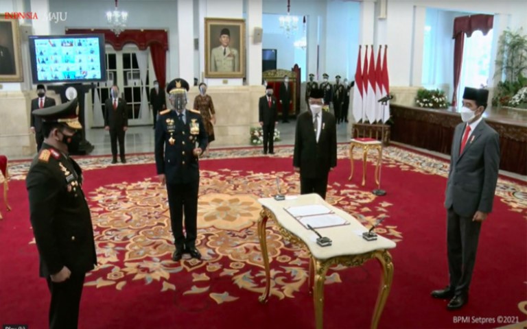 Dalam kesempatan tersebut, Presiden melalui Keppres Nomor 7/Polri Tahun 2021 tentang kenaikan pangkat dalam golongan perwira tinggi Polri, juga menetapkan kenaikan pangkat satu tingkat lebih tinggi kepada Komjen Polisi Listyo Sigit Prabowo menjadi Jenderal Polisi.