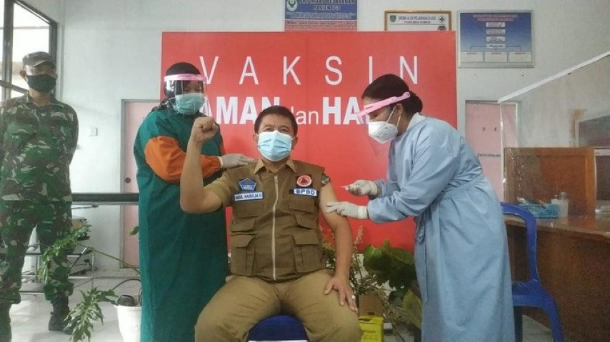 Setelah melalui prosedur screening yakni pemeriksaan tensi darah dan wawancara terkait riwayat penyakit, Sekda dinyatakan lulus screening dan bisa diberikan vaksin. Ia pun kemudian diarahkan petugas ke ruang vaksinasi untuk disuntik vaksin.