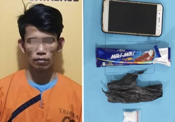 Melihat hal tersebut, polisi mengamankan pemuda itu dan ketika digeledah, ditemukan satu bungkus plastik bekas ice cream dari kantong celananya dan isi plastik itu ternyata satu paket narkoba jenis sabu-sabu sebanyak 3,38 gram yang akan dijualnya.