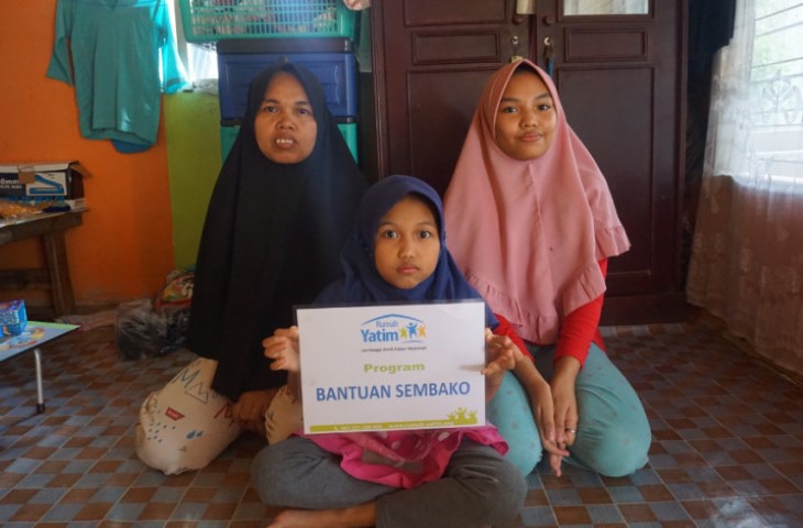 (INDOVIZKA) - Rumah Yatim Cabang Riau menyalurkan bantuan bahan pokok untuk keluarga Syahira Wirman (13) di kediamannya, Jalan H. M. Nur, RT.05/RW.05, Kelurahan Limbungan, Kecamatan Rumbai Timur, Kota Pekanbaru, Riau, Kamis (4/2/2021).