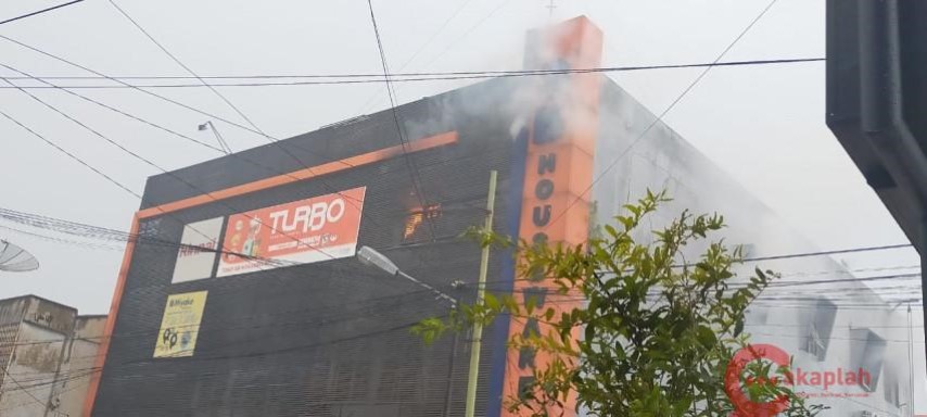 PEKANBARU (INDOVIZKA) - Sudah satu jam lebih api yang melahap bangunan toko grosiran barang pecah belah, SB Houseware, yang berada di Jalan Teratai, Kecamatan Sukajadi, Pekanbaru, belum bisa dipadamkan.