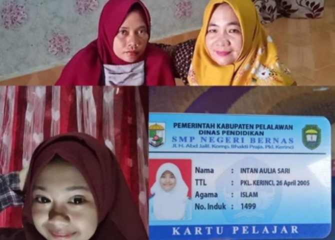PELALAWAN (INDOVIZKA) - Intan Aulia Sari (15) seorang siswi yang duduk di kelas IX Sekolah Menengah Pertama Negeri (SMPN) Bernas, Pangkalan Kerinci, Kabupaten Pelalawan dinyatakan hilang oleh pihak keluarga, terhitung sejak Senin (8/2/2021) atau sudah empat hari.