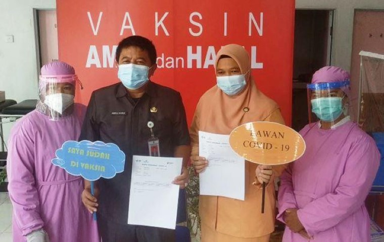 ROHUL (INDOVIZKA) - Sejumlah pejabat publik dan tokoh masyarakat di Rokan Hulu, antusias mengikuti vaksinasi Covid-19 tahap 2 di Puskesmas Rambah, Senin (15/2/2021). Vaksinasi Covid-19 tahap 2 ini diberikan setelah penyuntikan pertama dilakukan pada 1 Februari 2021 lalu.