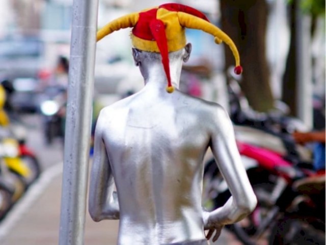 PEKANBARU (INDOVIZKA) - Manusia silver yang kerap ditemui di persimpangan Jalan Tuanku Tambusai atau tepatnya di persimpangan lampu merah Mal SKA banyak menarik perhatian publik. Dengan mengecat tubuhnya, mereka bisa mengumpulkan pundi-pundi rupiah yang tidak sedikit.