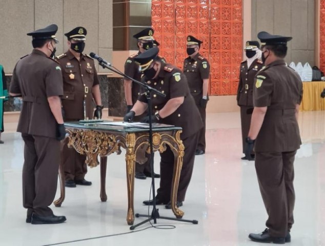 Pengambilan Sumpah Jabatan, Pelantikan, dan Serah Terima Jabatan Kepala Kejari Rohul dilakukan di Gedung Satya Adhi Wicaksana Kejaksaan Tinggi Riau - Pekanbaru yang dilakukan langsung Kepala Kejaksaan Tinggi Riau, Dr. Jaja Subagja, SH. MH, Jumat (26/2/2021).
