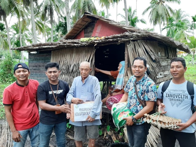 Bantuan berupa paket sembako, peralatan sholat, peralatan tidur beserta uang saku tersebut diberikan dilokasi pertama dikediaman Kakek Alkamah (75), Jalan H. Sadri Tembilahan beberapa belakangan kemaren sempat viral dimedia sosial akibat keadaannya yang kurang sehat, tinggal sebatangkara, kediamannya yang hampir ambruk dan jika hujan digenangi air pasang.