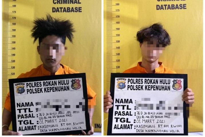 Tersangka yang ditangkap yaitu YH berumur 19 tahun warga Desa Kepenuhan Hilir, Kecamatan Kepenuhan, Kabupaten Rokan Hulu dan tersangka OD berumur 19 tahun warga Desa Kepenuhan Hilir, Kecamatan Kepenuhan, Kabupaten Rokan Hulu.