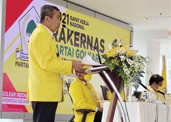 Pekanbaru (INDOVIZKA) - Ketua DPD I Partai Golkar Riau Syamsuar menghadiri pembukaan Rapat Kerja Nasional (Rakernas) Partai Golkar tahun 2021 yang digelar di Kantor DPP Partai Golkar, Slipi, Jakarta Barat, pada Jumat (5/3/2021) malam.