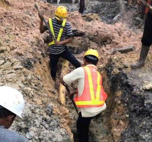 PEKANBARU (INDOVIZKA) - Pipa sambungan Jaringan Gas (Jargas) di Jalan Hos Cokroaminoto sempat putus akibat pengejaran proyek Instalasi Pengolahan Air Limbah (IPAL).