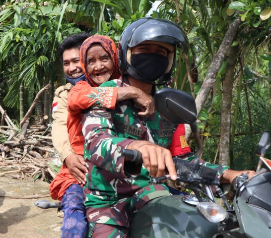 TEMBILAHAN (INDOVIZKA)- Kodim 0314/lnhil dan Babinsa Koramil 01/Tembilahan Sertu Masri bekerjasama dengan Ketua PSM dan komunitas Emak-Emak sehat dari Yayasan Panti Pondok Bhakti Lansia lakukan evakuasi warga lansia di Dusun Pandan Sari RT. 02 RW. 04, Desa Sialang Panjang Kecamatan Tembilahan Hulu, Kab. lnhil Prov. Riau, Selasa (09/03/2021).
