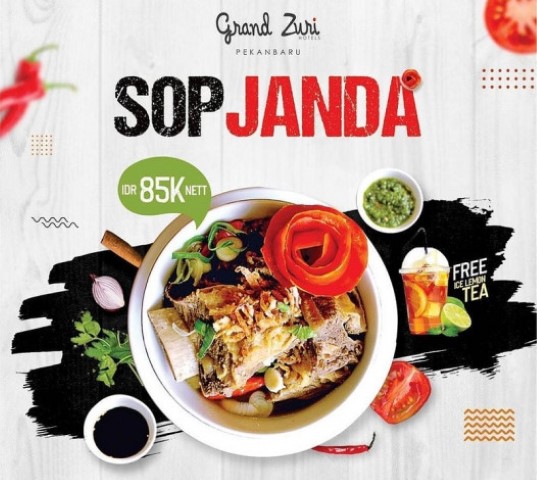 PEKANBARU (INDOVIZKA) - Grand Zuri Pekanbaru tak henti-hentinya menghadirkan promo untuk menarik konsumennya. Kali ini promo yang dihadirkan terbilang unik, yaitu Sop Janda.