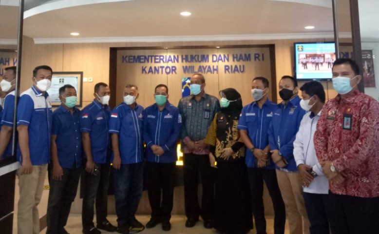 PEKANBARU (INDOVIZKA) - Pengurus DPD Demokrat dan DPC Demokrat di Riau mendatangi Kantor Wilayah (Kanwil) Kemenkumham Riau, Kamis (18/3/2021).