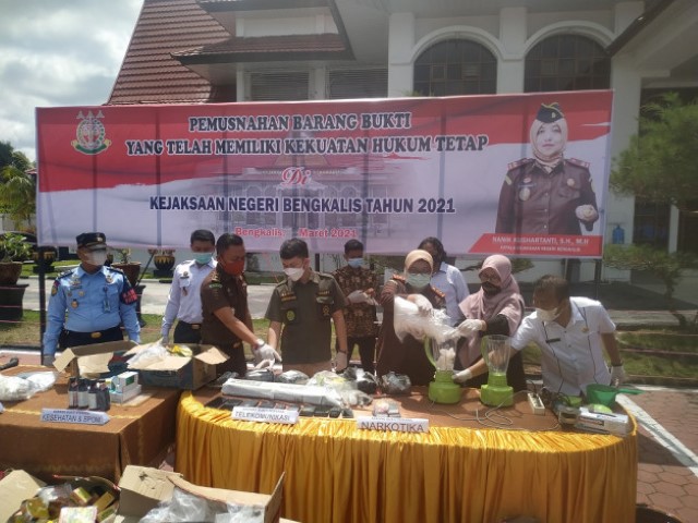 "Pemusnahan ini dalam rangka melaksanakan tugas Jaksa sebagai eksekutor pengadilan yang tentunya sudah memiliki kekuatan hukum tetap. Hal ini juga dimaksud untuk mengurangi penyalahgunaan kewenangan dari aparat kejaksaan sendiri kalau lama disimpan takut disalahgunakan, dicuri dan sebagainya. Tapi saya pastikan tidak ada yang seperti itu, "ungkap Kajari Bengkalis Nanik.