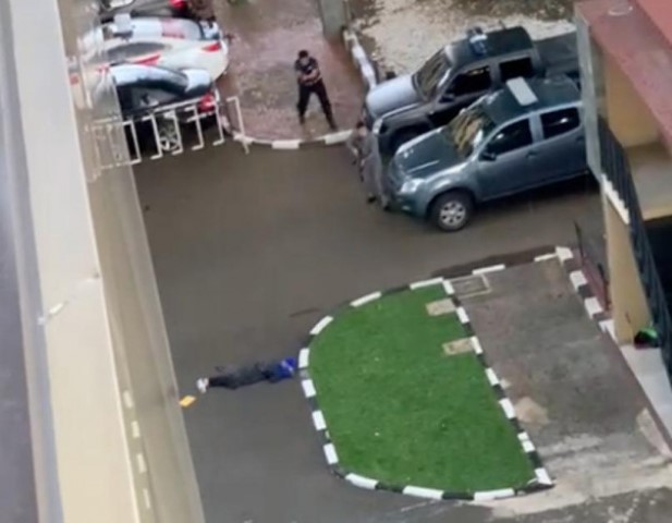 Tidak lama kemudian, tiba-tiba dua bunyi tembakan beruntun terdengar dan wanita tersebut langsung roboh terjatuh.