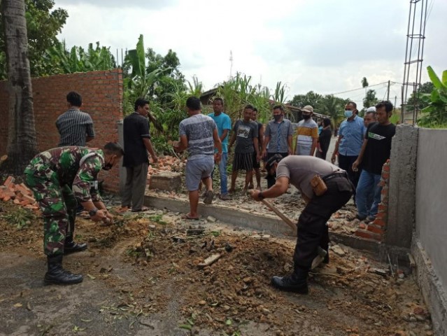 Pembongkaran dinding setinggi 2 meter yang menutup akses jalan tersebut dibongkar bersama-sama dengan TNI/Polri serta masyarakat setempat, Jumat (16/4/2021).