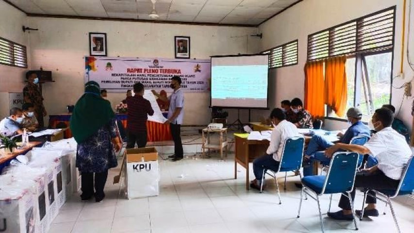 ROHUL (INDOVIZKA) - Rapat pleno rekapitulasi Suara Ulang Tingkat Kecamatan Pasca Putusan Mahkamah Konstitusi Pilkada Rohul hari ini tuntas dilakukan, Jumat (23/4/2021).