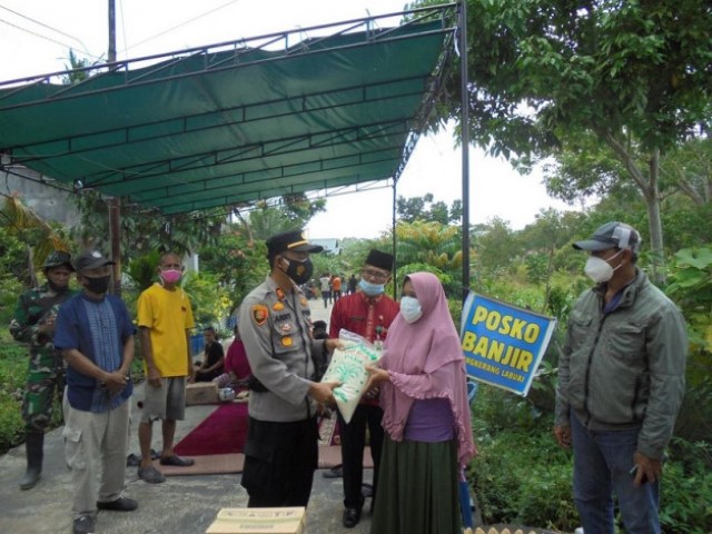 "Kami berikan bantuan sembako itu di posko banjir masing-masing perumahan itu. Polsek Bukit Raya bersama donatur bagian bantuan berupa indomie 10 kardus, telur ayam 22 papan, beras 10 bungkus, dan bahan pokok makanan lainnya seperti beras, gula, susu kaleng serta minyak goreng," jelas Arry, Jumat (23/4/2021).