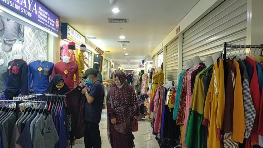 PEKANBARU (INDOVIZKA) - Pusat perbelanjaan Sukaramai Trade Center (STC) Pekanbaru yang berada di Jalan Jenderal Sudirman mulai dipadati pengunjung untuk mencari kebutuhan pakaian baru menjelang hari raya Idulfitri 1442 Hijriah.
