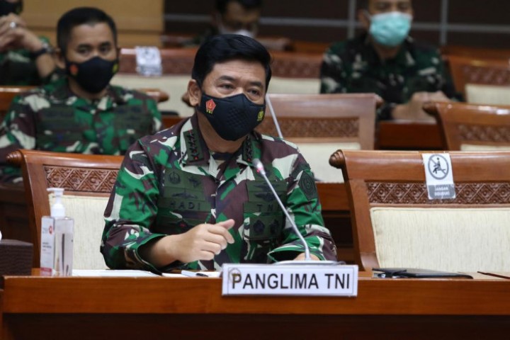 JAKARTA (INDOVIZKA) - Panglima TNI Marsekal TNI Hadi Tjahjanto, dan Kepala Staf TNI AL Laksamana TNI Yudo Margono, menghadiri rapat kerja bersama Komisi I DPR di Jakarta, Kamis (6/5/2021).