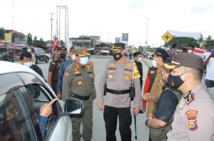 PEKANBARU (INDOVIZKA) - Kapolresta Pekanbaru bersama Walikota Pekanbaru meninjau Pos Penyekatan mudik di Jalan Lintas Timur, Kecamatan Tenayan Raya dan Simpang Garuda Sakti, Kecamatan Tampan, Pekanbaru, Kamis (6/5/2021).
