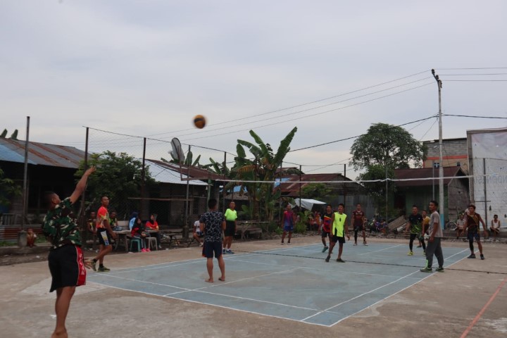 Olahraga voly dilaksanakan disela-sela waktu setelah selesai melaksanakan kegiatan pembangunan sasaran Flfisik dalam kegiatan Program TMMD ke 111 di 2 Desa Kecamatan Pelangiran, Kabupaten Indragiri Hilir.
