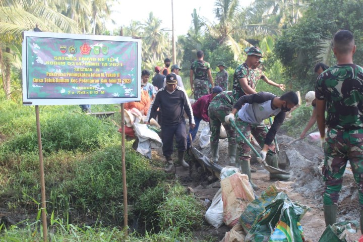 Sementara itu, Jakaria yang akrab di panggil Julak, salah seorang warga Desa Teluk Bunian yang hari ini ikut bergotong royong mengatakan bahwa dirinya sangat senang terlibat gotong royong bersama TNl.