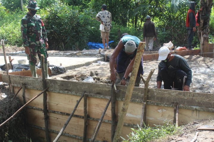 INHIL, (INDOVIZKA) - Selain mengejar target sasaran fisik semenisasi jalan penghubung Desa Teluk Bunian ke Kecamatan, Satgas TMMD ke 111 Kodim 0314/lnhil bersama masyarakat juga terus mengejar target pembuatan dinding Box Cuilvert di jalan Yakub 2 Dusun Sepakat Desa Teluk Bunian, Kecamatan Pelangiran, Kabupaten Inhil, Senin (28/06/2021).