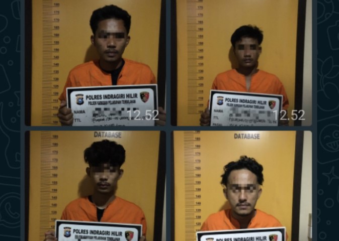 TEMBILAHAN, (INDOVIZKA)- Polsek Sektor Kawasan Pelabuhan (KSKP) Tembilahan, Polres Indragiri Hilir (Inhil) mengamankan 4 orang pelaku tindak pidana pencurian dengan pemberatan (Curat) yang terjadi di Jalan Yos Sudarso Kelurahan Tembilahan Kota Kecamatan Tembilahan, Kabupaten Inhil.