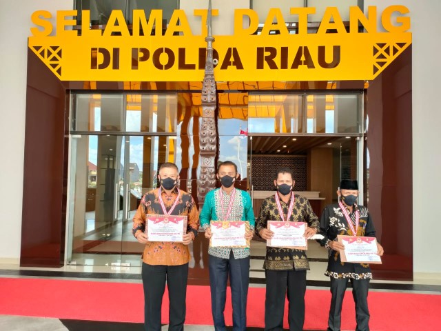 Bersempena dengan HUT Bhayangkara ke 75, Polda Riau memutuskan 4 orang tokoh masyarakat dari Inhil menerima penghargaan dari Kapolda Riau yang berperan besar dalam membantu pemerintah dan TNI Polri dalam penanganan Covid 19 dan kebakaran lahan.