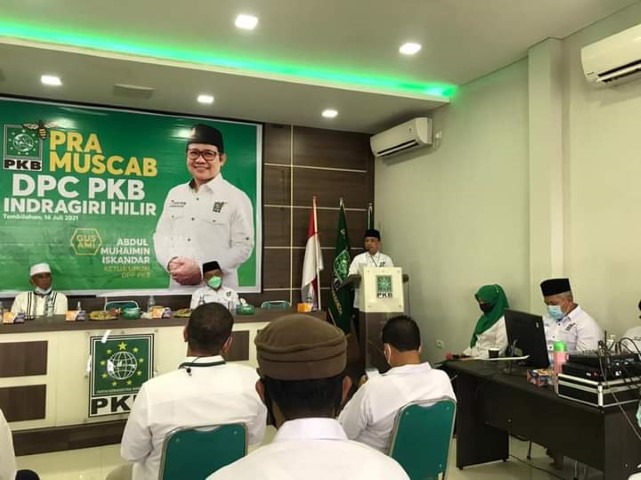 TEMBILAHAN, (INDOVIZKA)- Dewan Pimpinan Cabang (DPC) Partai Kebangkitan Bangsa (PKB) Kabupaten Indragiri Hilir (Inhil) menggelar kegiatan Pra Musyawarah Cabang (Muscab) Ke-5, Jumat (16/7/2021) siang di Kantor DPC PKB Kabupaten Indragiri Hilir, Jalan Suntung Ardi, Tembilahan.