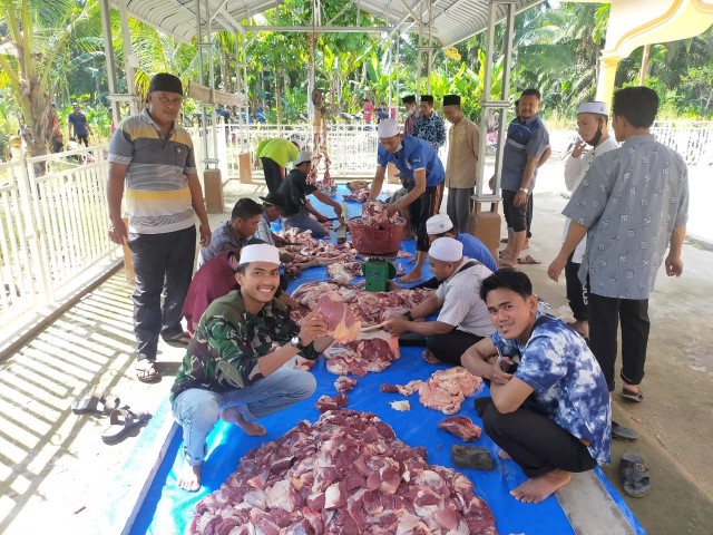 Desa Sialang Panjang Potong 7 Ekor Sapi dan 27 Kambing Kurban