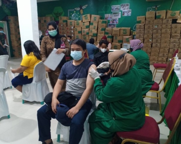 PEKANBARU, (INDOVIZKA) - Dewan Pengurus Wilayah (DPW) Partai Kebangkitan Bangsa (PKB) Provinsi Riau menggelar vaksinasi Covid-19 dosis pertama, Sabtu (14/8/2021) di Kantor DPW PKB Riau, Pekanbaru. Kegiatan vaksinasi bernama Vaksin Indonesia Bangkit ini dibuka secara resmi oleh Ketua DPW PKB Riau, Abdul Wahid.