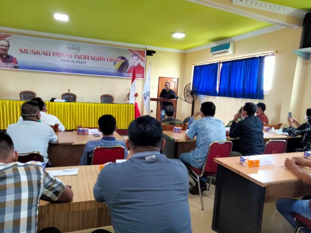 TEMBILAHAN, (INDOVIZKA)- H Raja Iriansyah terpilih sebagai Ketua baru Pengurus Cabang Persatuan Bola Voli Seluruh Indonesia (PBVSI) Kabupaten Indragiri Hilir periode 2021-2025 pada Musyawarah Kabupaten (Muskab) PBVSI yang digelar di Aula Hotel Telaga Puri Tembilahan, Sabtu, (14/8/2021).