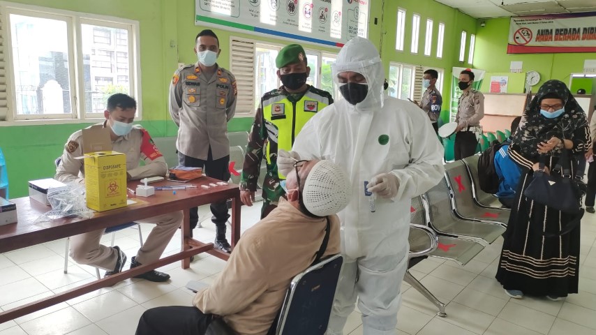 Semua penumpang berjumlah 19 orang setibanya di Tembilahan dilakukan swab antigen satu persatu, termasuk YU.