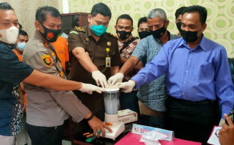Selanjutnya dilakukan pemusnahan 96,21 Gram narkotika jenis sabu dengan cara dilarutkan dalam air kemudian diblender lalu dibuang ke tanah.
