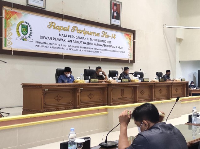 Adapun agenda Rapat Paripurna Ke-14 Masa Persidangan III Tahun Sidang 2021 yaitu, penyampaian pidato Bupati Inhil penjelasan Rancangan Peraturan Daerah (Ranperda) tentang perubahan APBD Kabupaten Inhil Tahun Anggaran 2021.