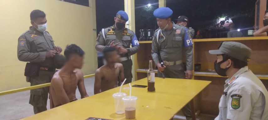 Dua Pemuda Sedang Menenggak Anggur Merah Diamankan Satpol PP Inhil
