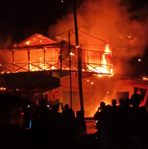 INHU, (INDOVIZKA) - Kebakaran hebat terjadi di Kabupaten Indragiri Hulu, Riau. Satu unit rumah toko semi permanen dan sembilan unit kios pedagang di Kelurahan Pematang Reba, Kecamatan Rengat Barat, ludes dilalap api, Jumat (1/10/2021) malam.