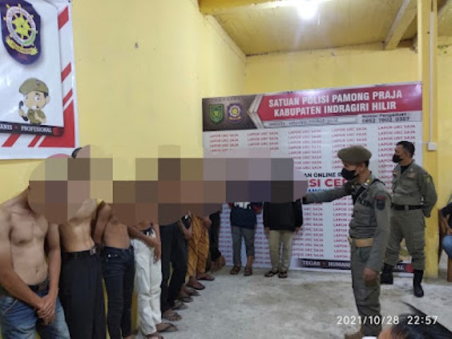 TEMBILAHAN, (INDOVIZKA)- Sebelas remaja yang sedang asyik menghisap lem kambing digerebek Tim Yustisi Satpol PP Inhil yang sedang melaksanakan Patroli Rutin Jaga Kondisi Kamtibmas di Tembilahan.